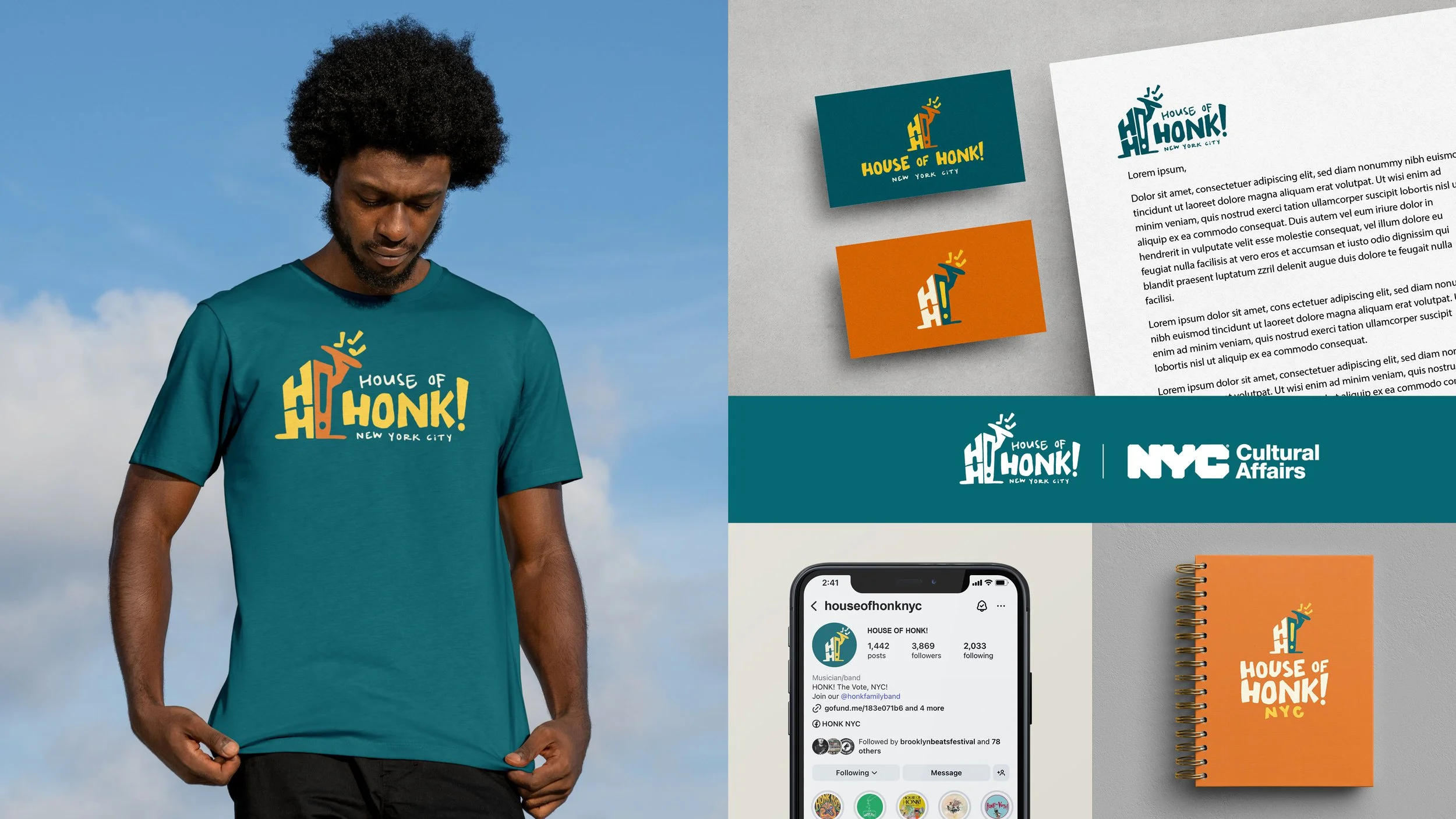 After working together on the poster for Honk NYC! Festival, the organizers asked for my help finalizing a logo for their new non-profit, House of Honk! The organizers had worked with a few other designers to develop a logo, but it wasn’t quite working. So I jumped in.